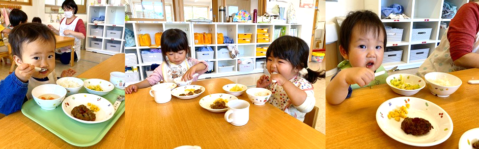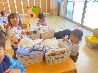 4月になりました☀ 3月は別れの季節でもありましたが、4月は出会いの季節。今年度も新しいお友達が保育園に来てくれました♪ また在園児のお友だちは進級しひとつお兄さん、お姉さんになりました♪ 4月は大きな行事もなく、新しいクラスの1日の流れに慣れることを目標に頑張ります!! 朝の準備をしたり~ 保育園によくきてくれました~のシールを貼ったり~ お部屋で遊んだり~ お外であそんだり!! いっぱい頑張った後は、 給食を食べます🍽 今年度もいっぱい遊ぶぞ~!!!
