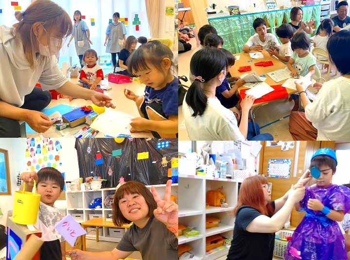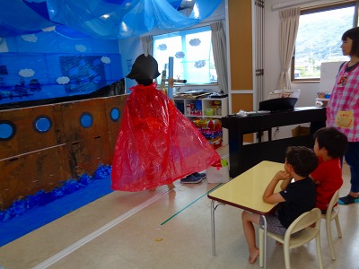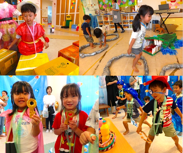 すいか組さんは海賊のキャプテン、りんご組は海賊見習いに変身し、みかん組さんはフルーツの国をつくり、いちごさくらんぼ組はレゴ王国☆、もも組さんは海の中のゲームセンター☆