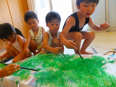 りんご組さん、おぉ~なにやらおっきい物を緑にぬっていきます!